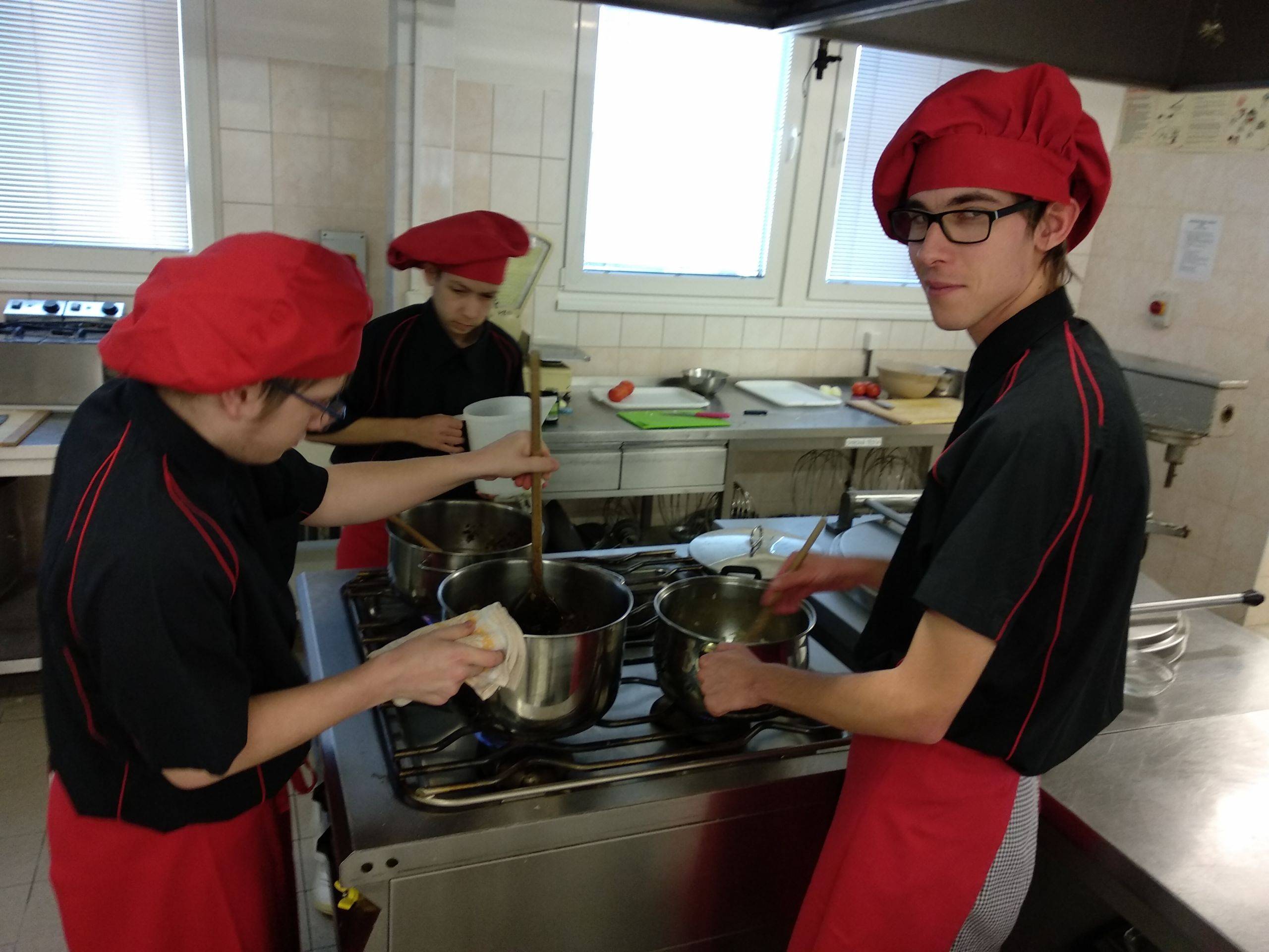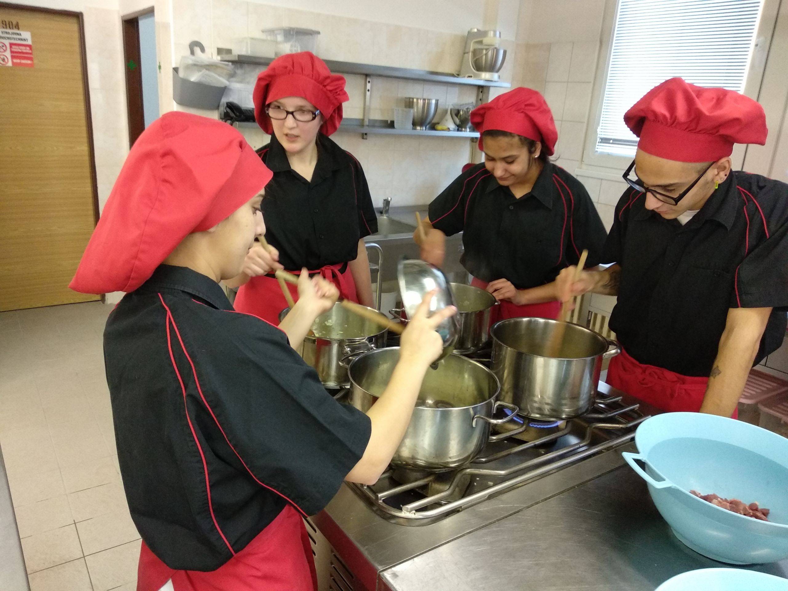 V rámci přípravy večeře pro ubytované žáky na internátě bylo uvařeno vepřové maso na kmíně, dušená rýže a rajčatový salát. Výsledek snažení kladně ohodnotila jak zkušební komise, tak spolužáci.